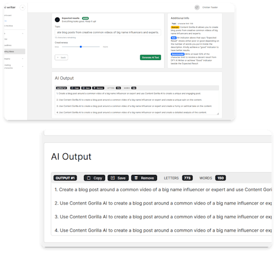 We keep it easy to use, but don’t take any of the capabilities. It’s simple to quickly generate headlines, copy, marketing ideas, even an elevator pitch.